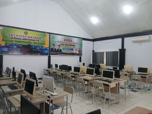Laboratorium komputer yang dilengkapi perangkat modern untuk menunjang pembelajaran teknologi informasi dan keterampilan digital.