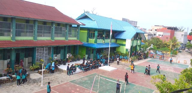 Area hijau yang asri, digunakan sebagai ruang terbuka untuk siswa beristirahat, berdiskusi, maupun belajar di luar kelas.