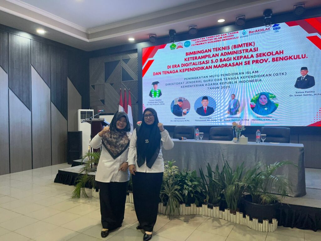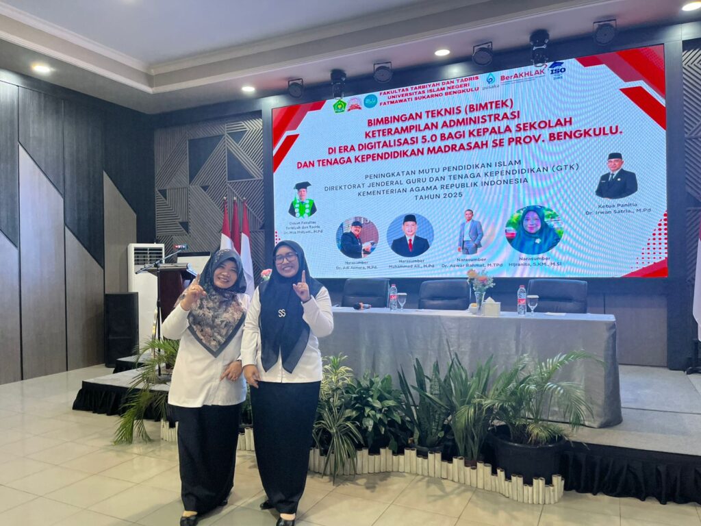 Kota Bengkulu (Humas) — Dalam upaya meningkatkan kompetensi dan profesionalisme tenaga pendidik serta kependidikan di era transformasi digital, Kepala Madrasah Madrasah Tsanawiyah Negeri 1 Kota Bengkulu MTsN 1 Kota Bengkulu bersama Kepala Tata Usaha mengikuti kegiatan Bimbingan Teknis (Bimtek) Keterampilan Administrasi di Era Digitalisasi 5.0 Bagi Guru dan Tenaga Kependidikan Madrasah se-Provinsi Bengkulu. Kegiatan ini diselenggarakan oleh Universitas Islam Negeri Fatmawati Sukarno Bengkulu melalui Panitia Pelaksana Bimtek, bertempat di Hotel Madelin Kota Bengkulu, pada Senin–Selasa, 3–4 November 2025.