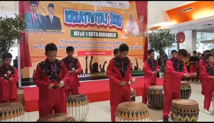 Kota Bengkulu (Humas) — Madrasah Tsanawiyah Negeri 1 Kota Bengkulu kembali menunjukkan komitmennya dalam mengembangkan potensi siswa melalui kegiatan Kreativitas Seni Kelas IX Tahun Pelajaran 2025/2026 yang dilaksanakan bersamaan dengan kegiatan Market Day (Kewirausahaan) siswa kelas VII dan VIII. Kegiatan yang digelar di Mega Mall Kota Bengkulu ini berlangsung meriah dan dihadiri oleh seluruh siswa, dewan guru, staf tata usaha, wali siswa, serta para tamu undangan, Rabu, 11 Februari 2026.