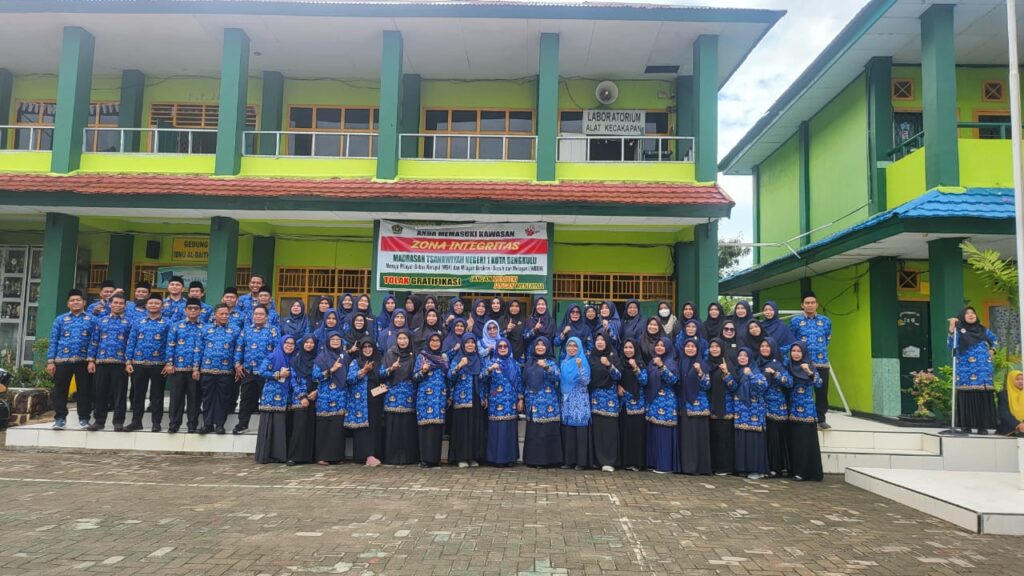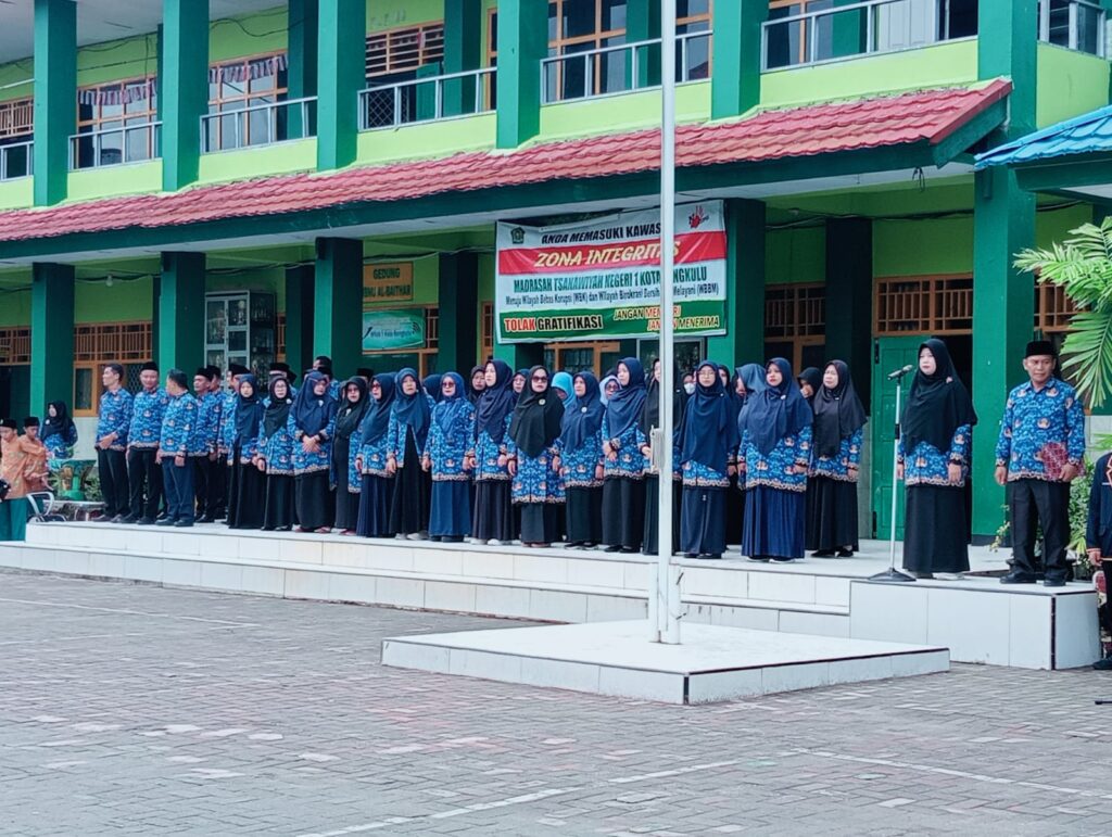 Kota Bengkulu (Humas) – Madrasah Tsanawiyah Negeri (MTsN) 1 Kota Bengkulu menggelar upacara peringatan Hari Kesaktian Pancasila tahun 2025 di halaman MTsN 1 Kota Bengkulu. Upacara ini mengusung tema nasional “Pancasila Perekat Bangsa Menuju Indonesia Raya” yang diikuti oleh seluruh guru, staf tata usaha, dan siswa-siswi MTsN 1 Kota Bengkulu dengan penuh khidmat, Rabu (01/10).