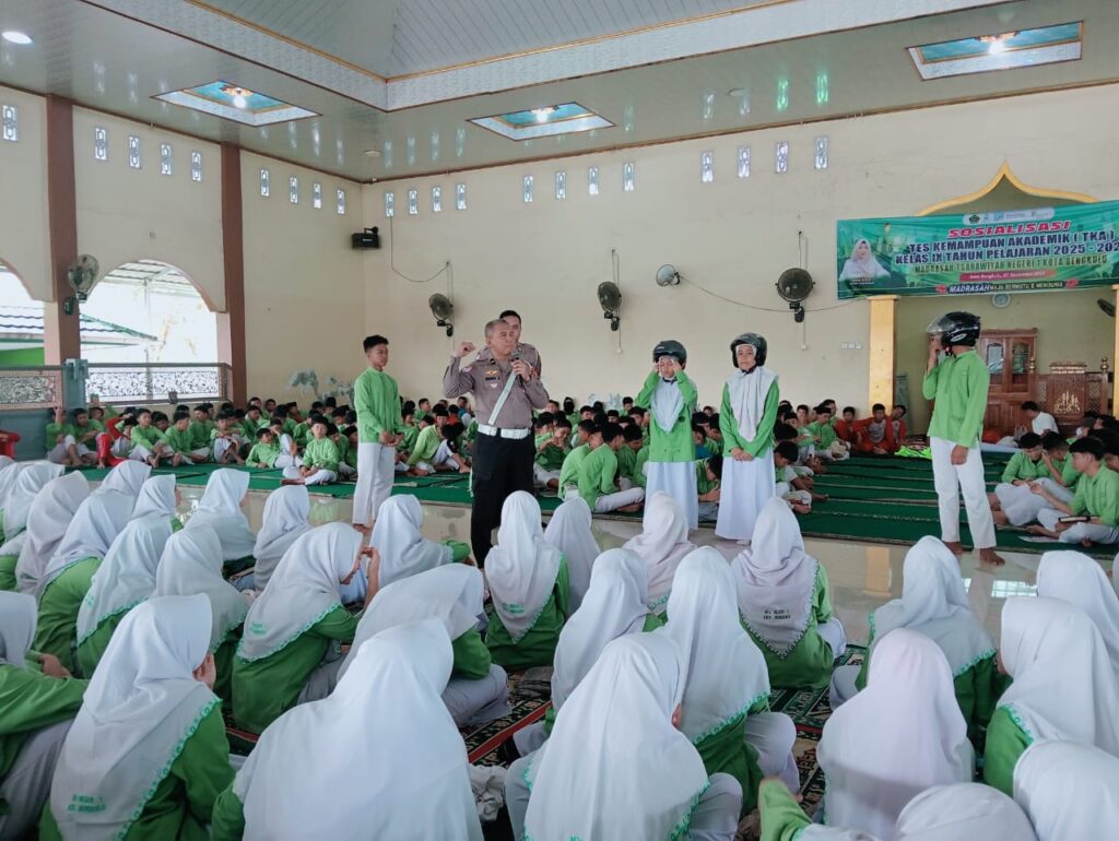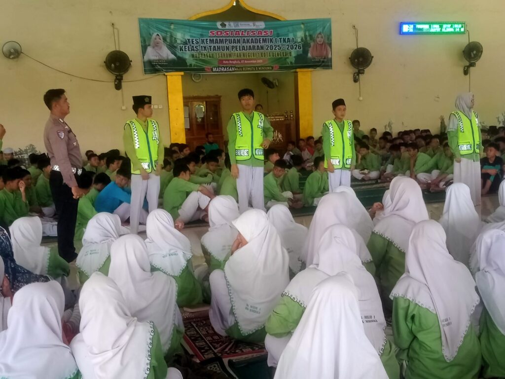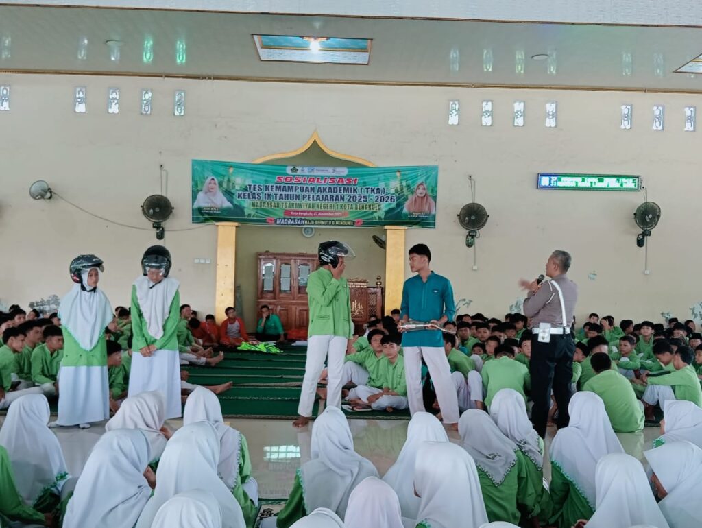 Kota Bengkulu (Humas) — Madrasah Tsanawiyah Negeri 1 Kota Bengkulu menggelar kegiatan sosialisasi tertib lalu lintas yang disampaikan oleh Polresta Bengkulu. Kegiatan ini berlangsung di Masjid An-Nur MTsN 1 Kota Bengkulu dan diikuti oleh seluruh siswa kelas VII, VIII, dan IX. Turut hadir para guru serta jajaran wakil kepala madrasah, Jumat (14/11/2025).