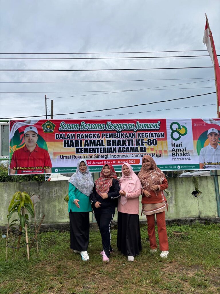 Kota Bengkulu (Humas) — Dalam rangka memeriahkan peringatan Hari Amal Bakti (HAB) Kementerian Agama ke-80, Kepala Madrasah Tsanawiyah Negeri 1 Kota Bengkulu turut hadir dan berpartisipasi dalam kegiatan senam bersama yang digelar oleh Kantor Kementerian Agama Kota Bengkulu. Kegiatan ini berlangsung meriah di halaman Kantor Kemenag Kota Bengkulu, Bentiring Permai, dan menjadi salah satu rangkaian kegiatan nasional yang digelar serentak di seluruh Indonesia, Senin (08/12/2025)..