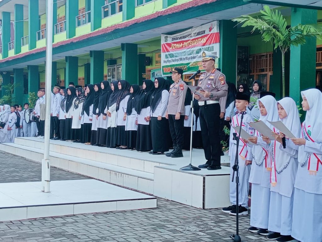 Kota Bengkulu (Humas) — Madrasah Tsanawiyah Negeri 1 Kota Bengkulu kembali melaksanakan upacara bendera rutin dengan suasana yang berbeda dan penuh semangat. Pada kesempatan kali ini, MTsN 1 Kota Bengkulu mendapat kehormatan karena kedatangan Tim Direktorat Lalu Lintas (Dirlantas) Polda Bengkulu, yang dipimpin langsung oleh Bapak Deddy Nata, S.I.K selaku Dirlantas Polda Bengkulu dan sekaligus bertindak sebagai pembina upacara, Senin, (03/11/2025).